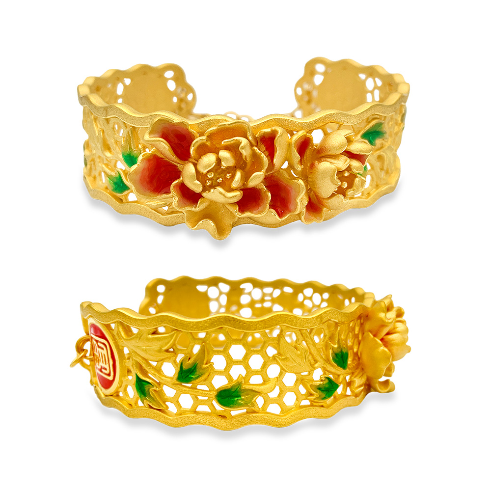 美滿良緣999黃金琺瑯彩「富貴牡丹」手鐲每隻約 HK$44,600.00